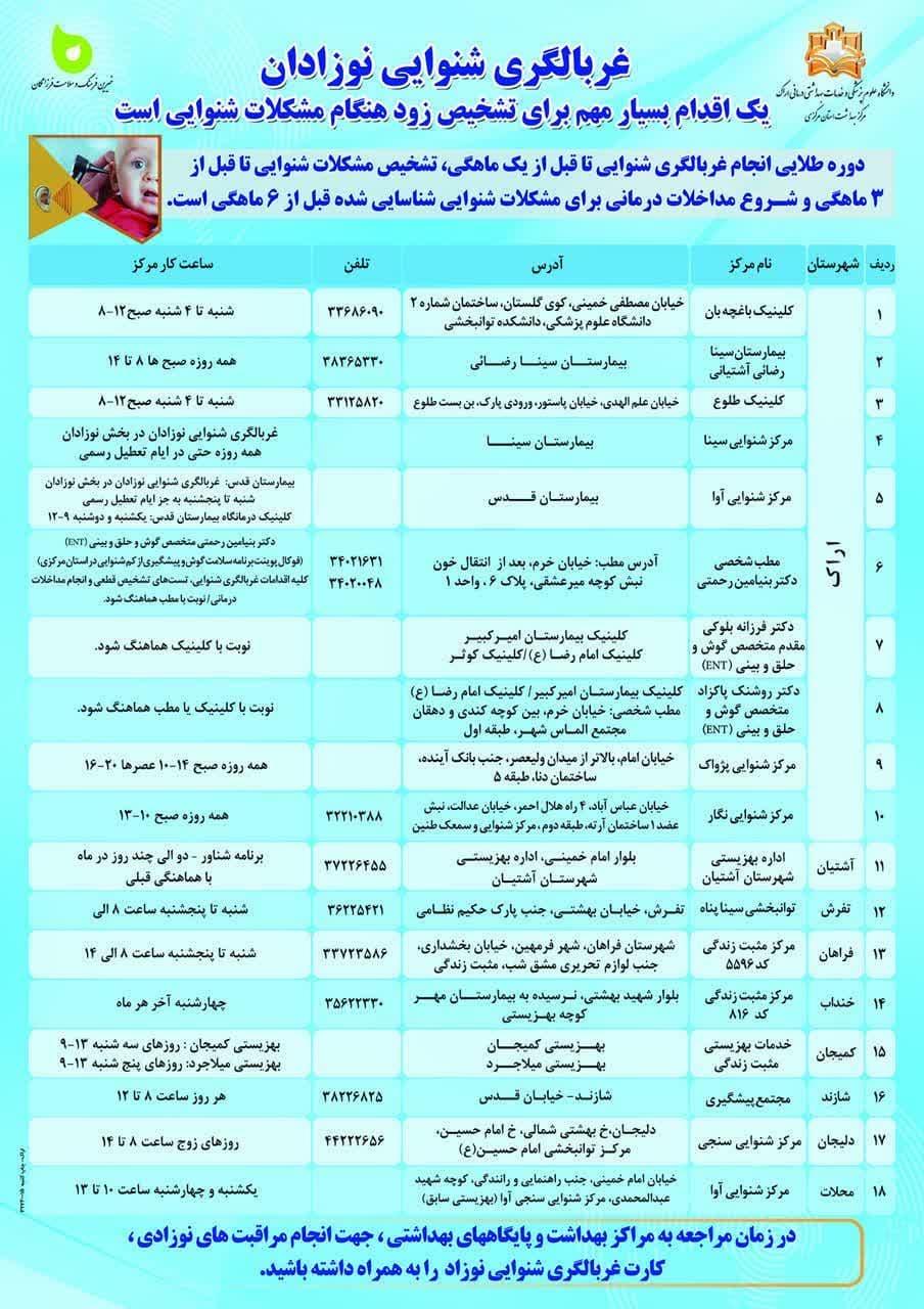 3پوستر اطلاع رسانی مراکز غربالگری شنوایی نوزادان سطح ۱ و ۲ و ۳پوستر اطلاع رسانی مراکز غربالگری شنوایی نوزادان سطح ۱ و ۲ و ۳اطلاعیه مبارزه با بیماری های غیر واگیر
